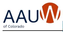 The American Association of University Women (AAUW) is one of the oldest women’s organizations in the country, empowering women since 1881. The mission of AAUW is to advance equity for women and girls throughresearch, education, and advocacy. AAUW of Colorado represents over 700 community leaders in branches around the state